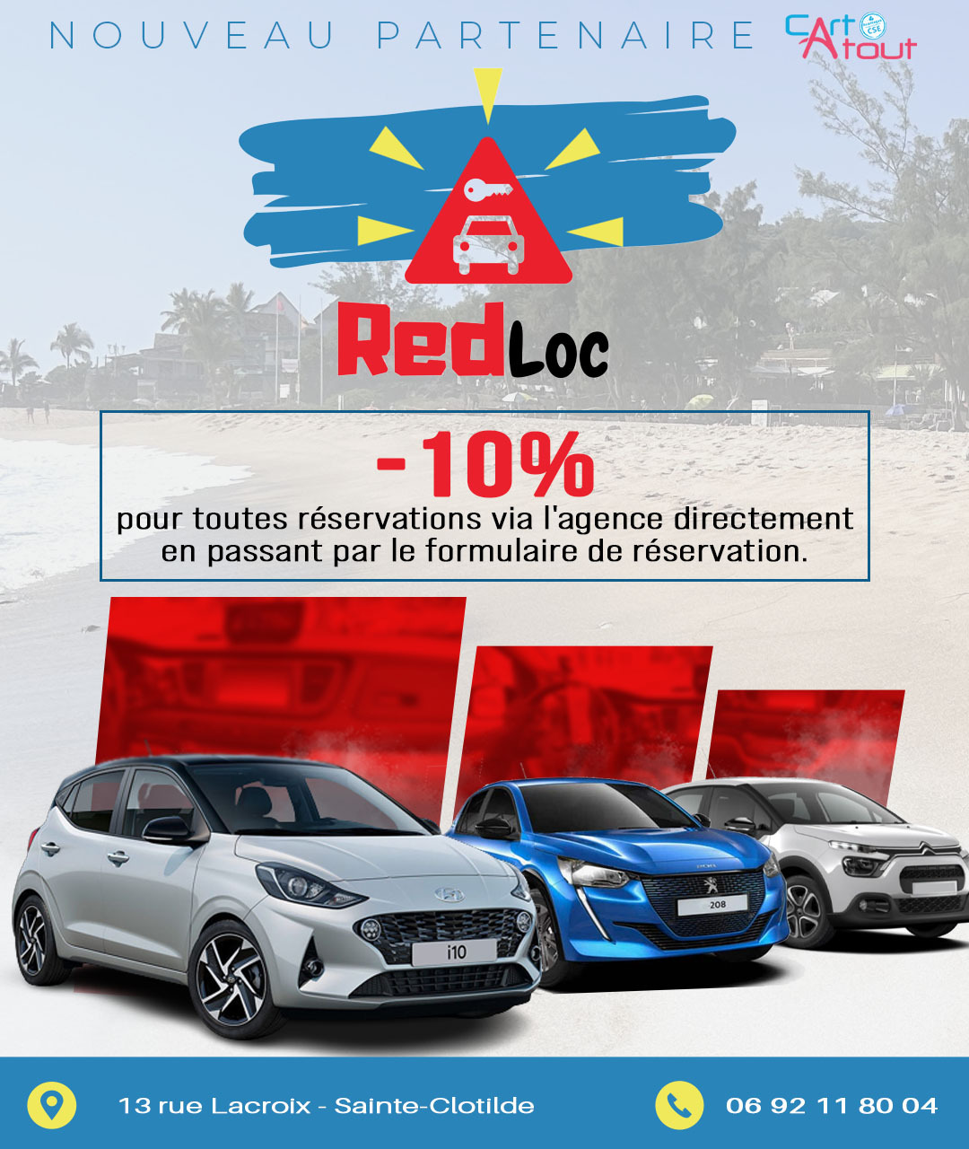 -10% : de remise valable sur l'ensemble des produits. Commande par téléphone au 0692 46 71 04